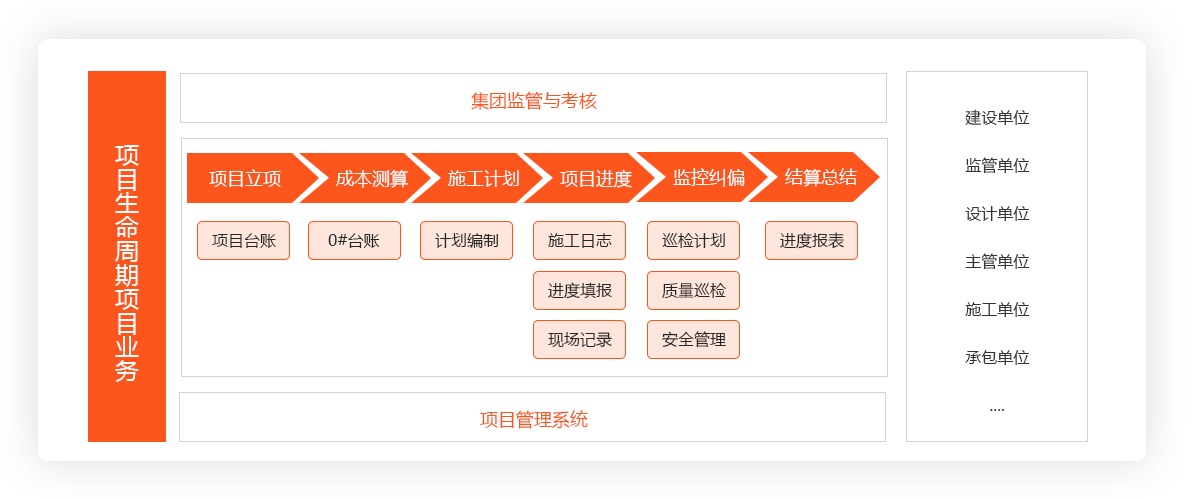 從成本、進(jìn)度、合同、施工過程、質(zhì)量、安全等方面著手,監(jiān)管項目的全生命周期